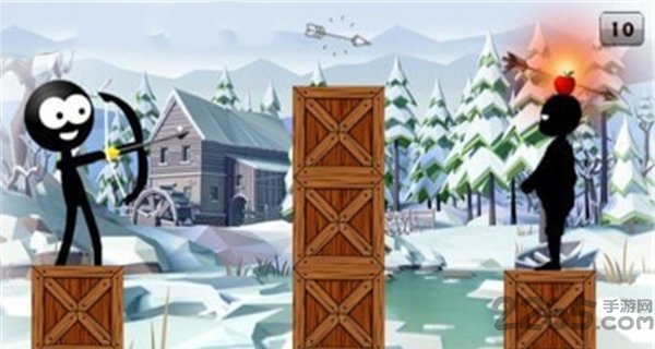 这是一款充满趣味性的休闲冒险闯关游戏,游戏沿用了经典的火柴人形象,并结合了新颖有趣的玩法。你需要操控火柴人,准确判断射击的角度和力度,将场景中的所有苹果击落才算完成挑战,还有多个难度不一的关卡等待你来逐一征服!
