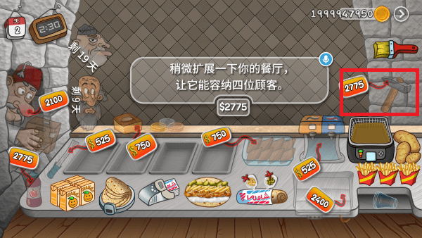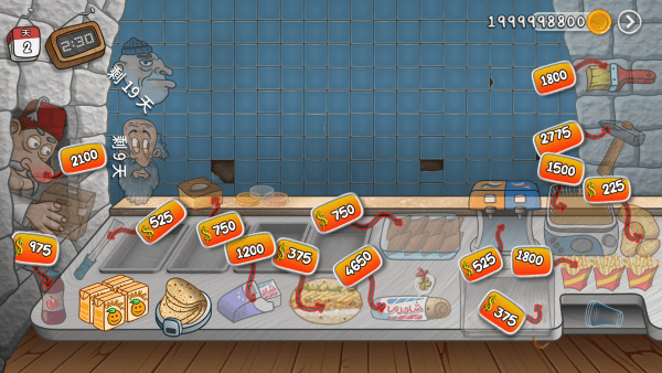 或者购买刷子来改变店铺的风格,吸引更多的顾客。左侧的倒计时显示的是小偷和乞丐出现的时间,需要注意防范。